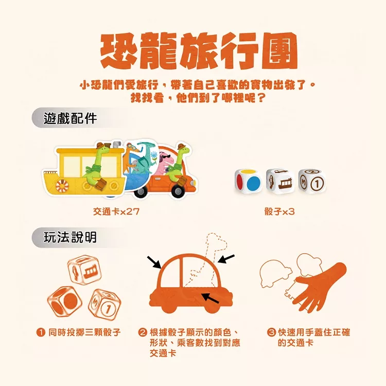 內容物/27張交通卡、3個骰子