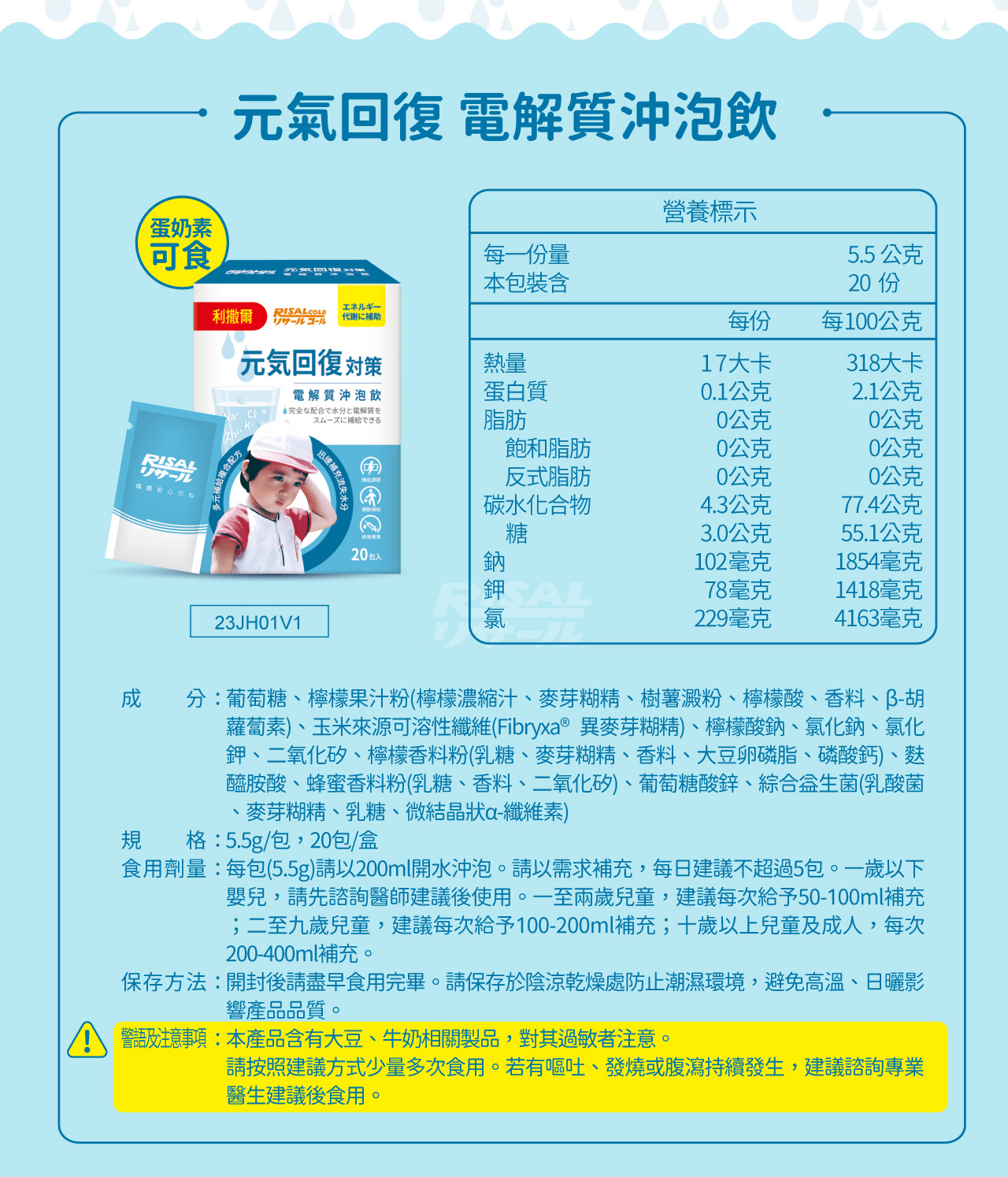 本產品含有大豆、牛奶相關製品,對其過敏者注意。請諮詢專業醫生建議後食用。