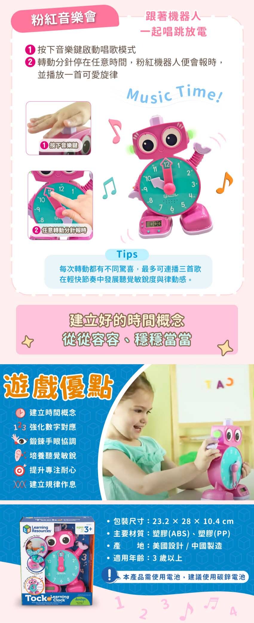 Learning Resources 教學資源-互動學習時鐘-粉紅機器人