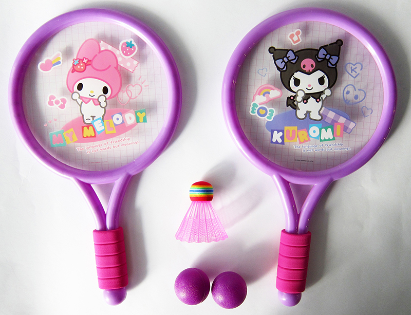 ◆內容物: 1. 2支兒童球拍(整體尺寸約23×40 cm) 2. 1個羽毛球 3. 2顆小圓球(直徑約5 cm) ◆產品特色: 1. 環保材質,通過安全檢驗。 2. 圓形球拍面加大接發球面積,幫助兒童更容易上手。 3. 止滑手把好握不易掉拍。 4. 兩支球拍分別有酷洛米和美樂蒂圖案,豐富遊戲趣味。 5. 快樂玩耍,增加親子互動。 ◆運動好處多: 1. 刺激多重感官 2. 訓練即時反應 3. 強化肌肉發展 4. 促進肢體協調 5. 增強心肺功能 一起拍出健康好活力! (↑內容物參考圖)